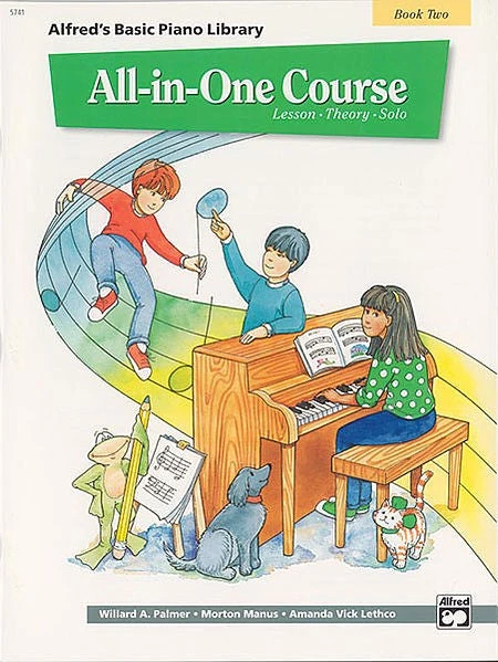 The All-in-One Course for Children combines all of the pages from Alfred’s Basic Piano Library Lesson Books 1A and 1B, plus selected pages from Theory, Recital and Fun Solo Books.