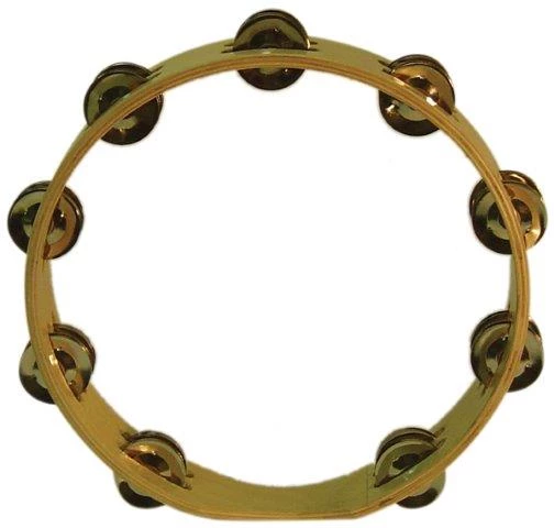 Headless 10 inch tambourine with wood rim. 18 pairs of nickel-silver jingles in 2 rows.