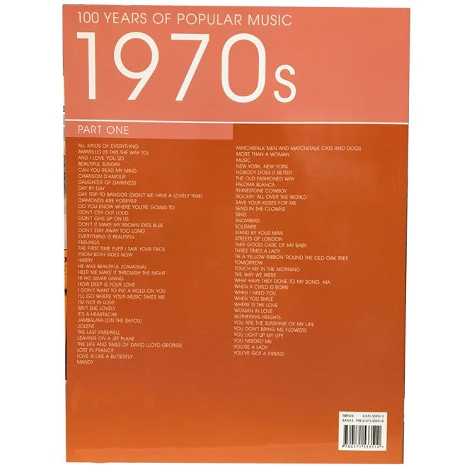 A collection of timeless songs from the 1970s. Arranged for piano, vocal and guitar with chord diagrams and lyrics, along with a short recap of musical developments on the genres.