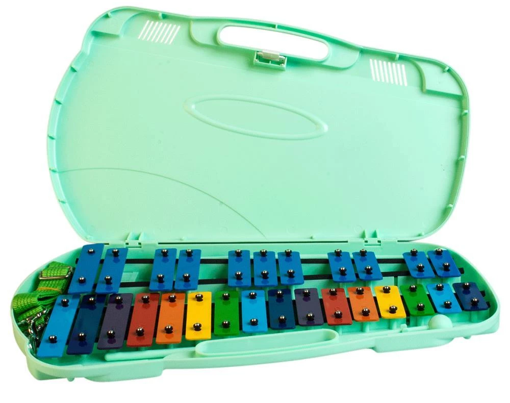 Great way for kids to start exploring sound with this 27 note chromatic glockenspiel. Rich sounding notes and two mallets included.