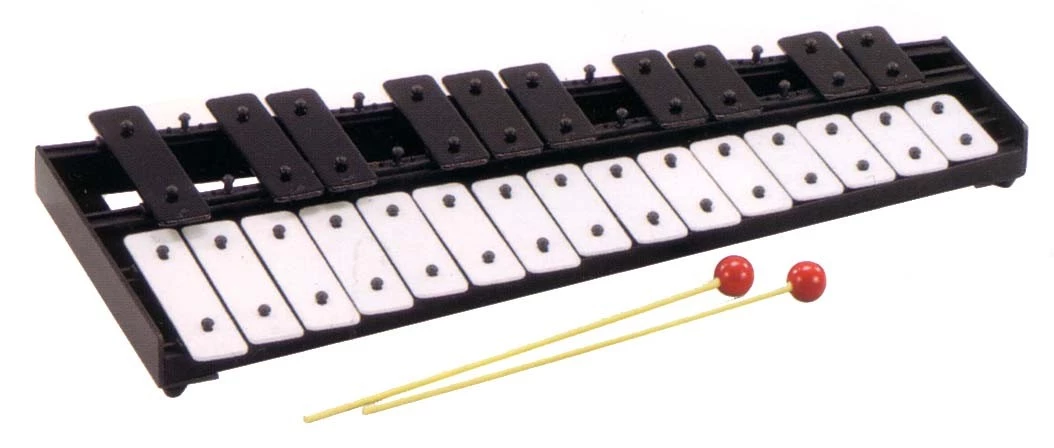 25 note chromatic Glockenspiel with two beaters. Range A-A.