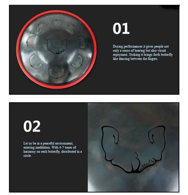 As very newly-developed musical instruments, steel tongue drums do not require complicated musical theory or any rudiments of music. You can play tongue drums by much improvising, and could make different performance each time, even on the very same song. They can be played by drumstick (soft mallets) or by bare hands, beating, patting, or finger patting, with no fixed musical background. Can be played by anyone of any age, easily portable and perfect for Yoga, Zen, Sound Healing, Personal Meditation, and Stimulates Imagination and Creativity.
