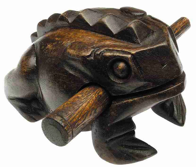 Ribbit Frog. Resembles frog sound when played with striker. Wood construction.